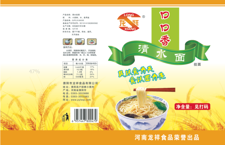 濮陽(yáng)市龍祥食品有限公司位于河南省濮陽(yáng)縣戶(hù)部寨鎮(zhèn)小濮州,始建于1994年,前期投資200萬(wàn)元,經(jīng)過(guò)幾年的努力,大力開(kāi)發(fā)市場(chǎng),由于市場(chǎng)的需求量急劇上升,出現(xiàn)供不應(yīng)求,于2004年擴(kuò)建,建成一座新型的現(xiàn)代化面粉加工企業(yè),并擁有全國(guó)先進(jìn)全自動(dòng)生產(chǎn)設(shè)備一套,產(chǎn)量由以前的100噸/天,提高到現(xiàn)在400噸/天。 2012年再次擴(kuò)大規(guī)模申請(qǐng)為濮陽(yáng)市龍祥食品有限公司,注冊(cè)資金500萬(wàn)元。2012年又投資800萬(wàn)元新建掛面生產(chǎn)線一條,日產(chǎn)掛面50噸。龍祥食品有限公司現(xiàn)有職工120余人,總工程師1人,專(zhuān)業(yè)技術(shù)人員10人,經(jīng)濟(jì)師1人,會(huì)計(jì)師1人,銷(xiāo)售人員2人,優(yōu)秀專(zhuān)業(yè)人員20余人。  龍祥公司自創(chuàng)建以來(lái),社會(huì)效益十分可觀。公司一直以“今天的質(zhì)量,明天的市場(chǎng)”為信念,“一切為了客戶(hù)需求,竭誠(chéng)追求完美品質(zhì)”為企業(yè)宗旨,走專(zhuān)業(yè)化經(jīng)營(yíng)和職業(yè)化管理的路子。